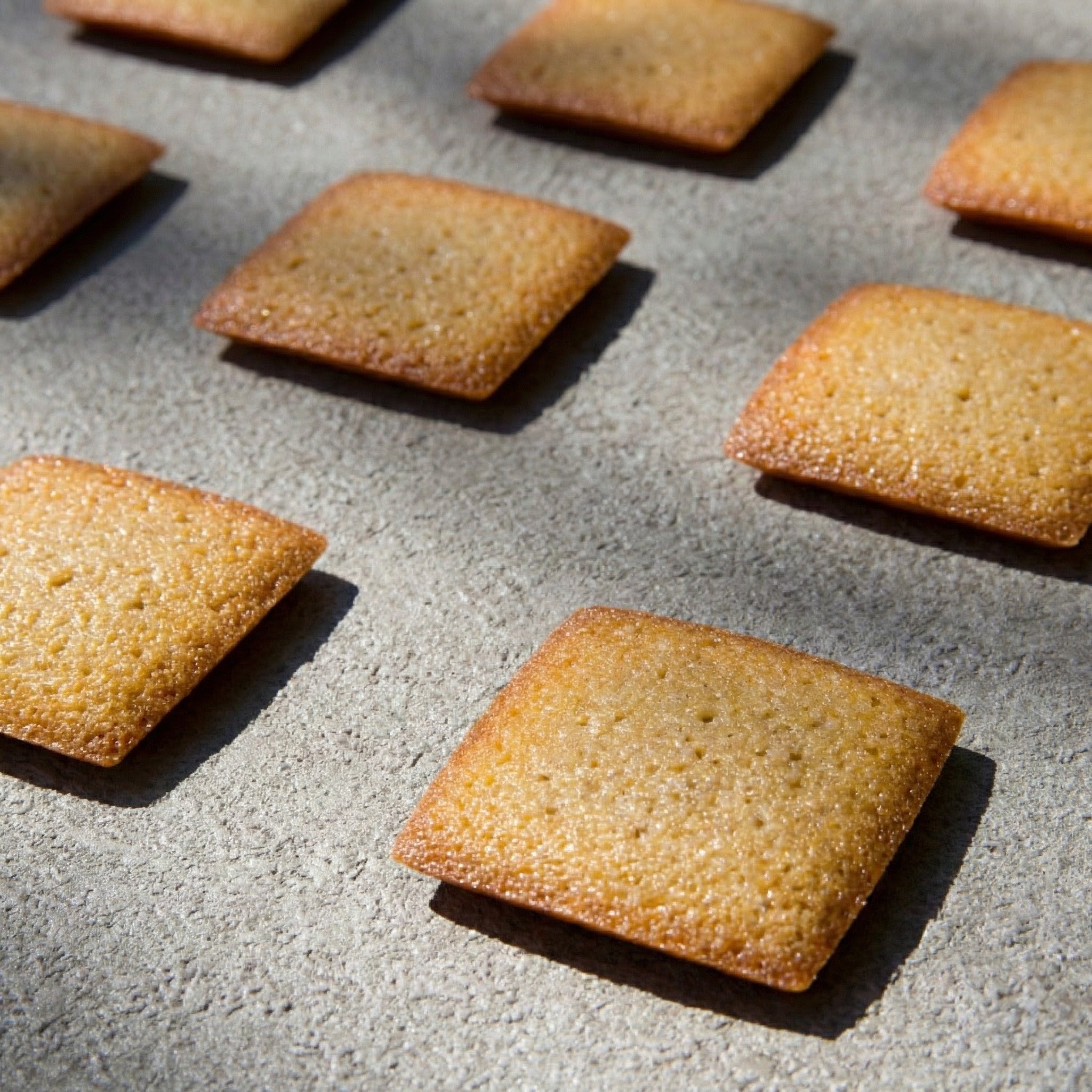 保留費南雪獨特的榛果奶油與杏仁香氣將傳承自日本職人的用心灌注在每一片餅乾中